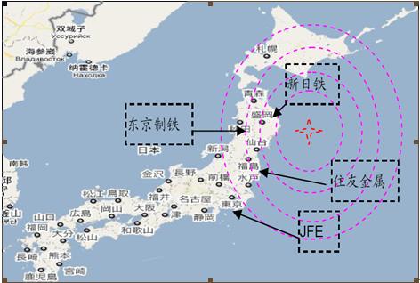 圖5. 日本鋼鐵企業(yè)分布及受沖擊的狀況示意