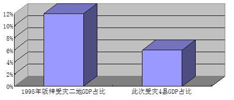 第三,受災(zāi)地區(qū)占本國經(jīng)濟總量比重不大。本次受災(zāi)4縣(主要4縣,分別為日本巖手縣、福島縣、宮城縣和茨城縣)占日本在6%左右,而1995年大阪和兵庫兩個最嚴(yán)重的受災(zāi)區(qū)(不包含其他波及地區(qū))占當(dāng)時日本全球GDP比重達12.4%。此次受災(zāi)地區(qū)4縣與1995年阪神地區(qū)在當(dāng)時日本經(jīng)濟中的地位無法相提并論。