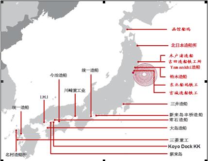 圖6. 日本主要船廠及受災(zāi)分布圖