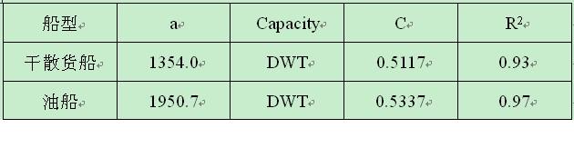 干散貨船或油船的a、c數(shù)值如下: