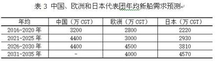 總體市場(chǎng)來看,“十三五”期間,全球經(jīng)濟(jì)緩慢復(fù)蘇,海運(yùn)量增長(zhǎng)乏力,新船需求將出現(xiàn)明顯萎縮。專家一致認(rèn)為,年均新船需求在3300萬修正總噸以下。不過,隨著世界經(jīng)濟(jì)復(fù)蘇,新船需求將有所回升。
