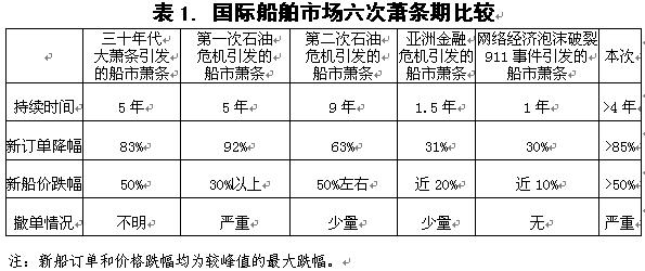 任何人均無法準(zhǔn)確無誤地預(yù)測本次船市蕭條期的長短。目前,由于還存在太多的不確定性因素,使得我們無法確定本次后危機(jī)時期的經(jīng)濟(jì)走向。我們認(rèn)為,船市蕭條的終結(jié)有賴于前幾年船市高度興旺過程中積聚成的兩大泡沫【一是6.4億載重噸船舶手持訂單(2008年9月歷史最高位),二是2億載重噸造船產(chǎn)能】的擠出;世界經(jīng)濟(jì)及早復(fù)蘇并不一定能有效縮短航運(yùn)蕭條期,加速拆解老舊船舶和大量撤銷造船訂單才能使航運(yùn)市場提前復(fù)蘇;而造船市場供求關(guān)系的改善不僅要靠新船訂單量明顯增加,更有賴于全球過剩造船能力的處置。但是,大量拆解船舶對船東并不輕松,而造船訂單被大量撤銷和大幅度處置過剩造船能力對船廠造成的極大困難也是不言而喻的。至于本次船市蕭條持續(xù)時間,我們認(rèn)為船市蕭條期起碼要比世界經(jīng)濟(jì)金融危機(jī)長,即使世界經(jīng)濟(jì)出現(xiàn)復(fù)蘇,傳導(dǎo)至船舶市場還需要一段時間,最樂觀估計本次船舶市場蕭條期持續(xù)時間至少在7-8年,如果世界經(jīng)濟(jì)不能持續(xù)有效復(fù)蘇,世界造船市場蕭條持續(xù)時間將更長。