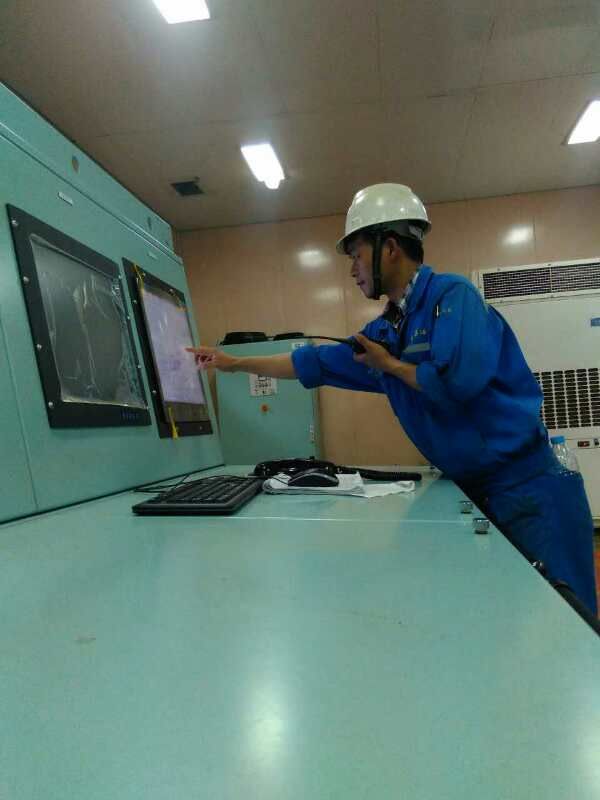 推開集控室的門就被一個人的氣場所吸引,身材一點兒都不魁梧但給人絕對精悍的感覺,他就是輪機調試員梁桂明。畢業(yè)兩年,早已不再是那個跟在師傅身后的懵懂少年,現(xiàn)獨立負責BS09船的遙控閥、液位遙測、壓載水等項目的調試工作。從艏部空艙到貨艙、壓載艙、管弄、邊空艙……據(jù)說每一個艙室都是體力活,當被問到累不累的時候他卻笑著說“不累,就當鍛煉身體了?!?