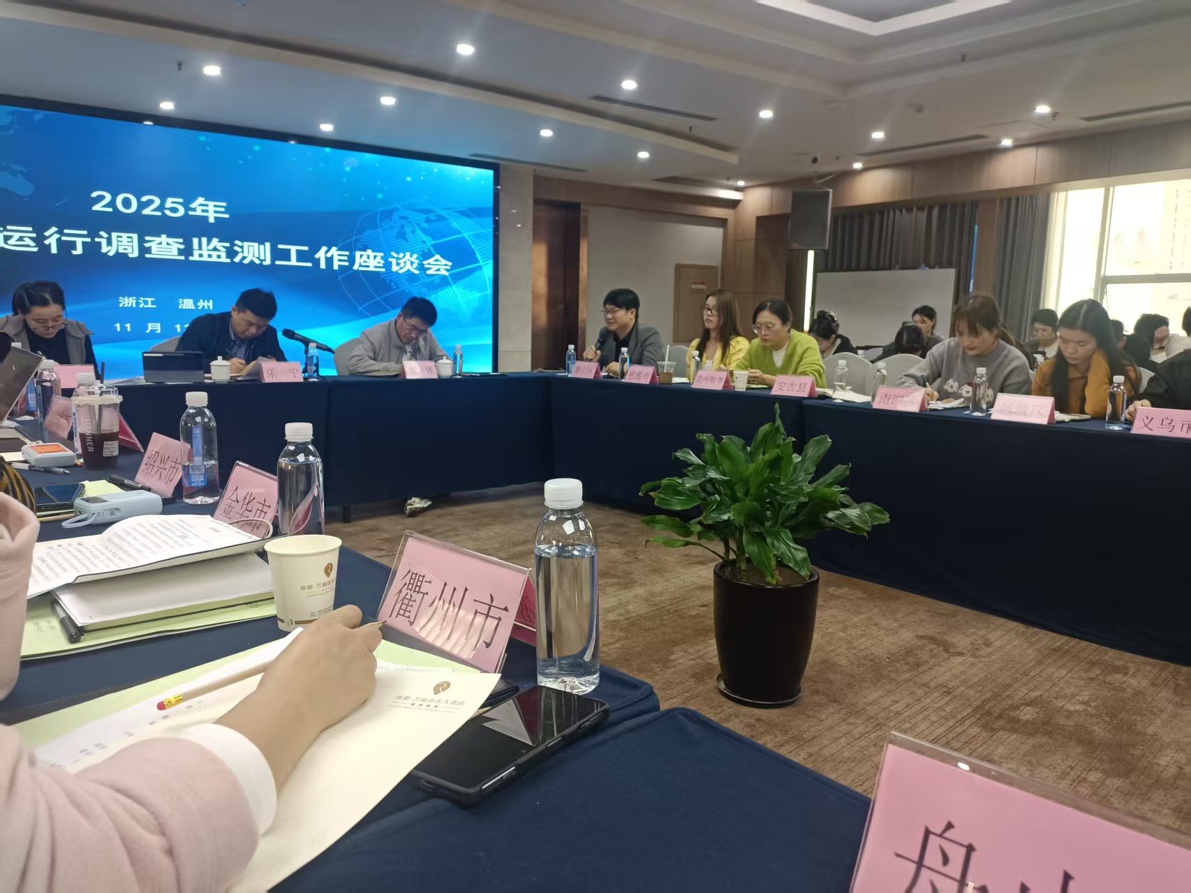 11月13日上午,海關(guān)一級(jí)調(diào)研員丁處長(zhǎng)以“2025年中美經(jīng)貿(mào)戰(zhàn)下的韌性與突圍”為題作了深入分析,并結(jié)合浙江省各市的進(jìn)出口數(shù)據(jù)進(jìn)行了細(xì)致解讀。國(guó)家外匯管理局溫州市分局陳婷婷老師系統(tǒng)介紹了匯率避險(xiǎn)及相關(guān)支持政策,為各監(jiān)測(cè)點(diǎn)應(yīng)對(duì)外匯波動(dòng)提供了實(shí)用指導(dǎo)。當(dāng)日下午,省商務(wù)廳貿(mào)發(fā)處副處長(zhǎng)樂(lè)寧、李臻副主任等領(lǐng)導(dǎo)共同組織了全省商務(wù)運(yùn)行調(diào)查監(jiān)測(cè)系統(tǒng)工作座談會(huì)。來(lái)自全省各市、區(qū)縣的與會(huì)代表,圍繞監(jiān)測(cè)工作現(xiàn)狀、遇到的困難與挑戰(zhàn)、當(dāng)前形勢(shì)研判、企業(yè)對(duì)接實(shí)務(wù)以及相關(guān)建議等方面展開(kāi)了深入交流。